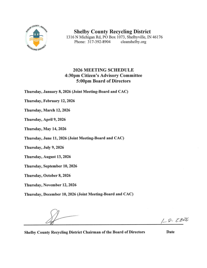 Staff & Board of Directors StaffLisa Carpenter – Directorlcarpenter@cleanshelby.orgAnn Warble Haehl – Educatorshelbycountyenvirogal@gmail.comBen Moore- Compliance Officerben.moore@cleanshelby.org Board of DirectorsChairman Scott FurgesonMayor of ShelbyvilleTerm: 2024-2027Vice Chairman Jeremy CreechFairland Town CouncilTerm: 1-1-25 to 12-31-26Jason AbelShelby County CommissionerTerm: 2023-2026David LawsonShelby County CommissionerTerm: 2025-2028Nathan RunnebohmShelby County CommissionerTerm: 2025-2028Nick O’ConnorShelby County CouncilTerm: 1-1-25 to 12-31-26Chuck ReedShelbyville City CouncilTerm: 1-1-25 to 12-31-26Ralph HendersonMorristown Town CouncilTerm: 1-1-25 to 12-31-26 Citizen Advisory Committee MembersLucinda FranklinTim DingmanTodd JohnsRusy PettitPam DearingerJordan CaldwellAnnette CreedDave FanninRobert Lewis SB-131-Report